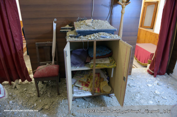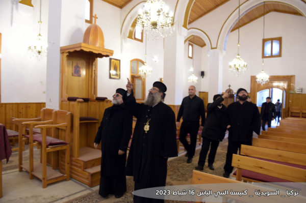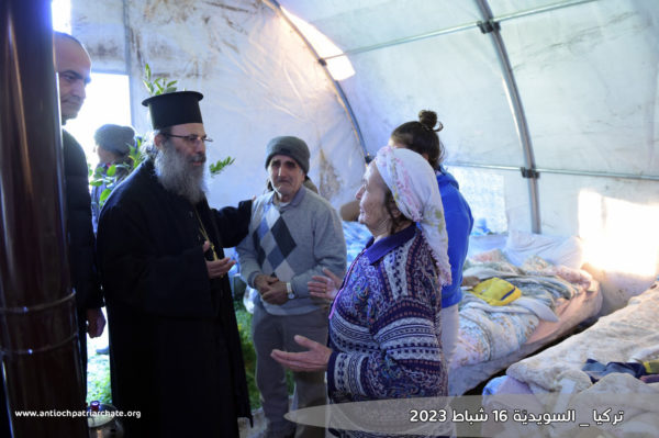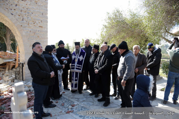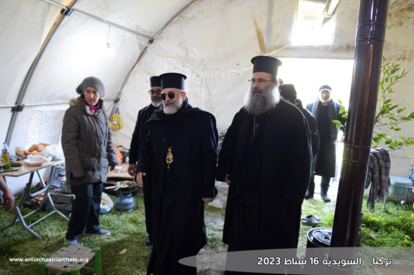Η πατριαρχική αντιπροσωπεία επισκέφθηκε τις εκκλησίες του Προφήτη Ηλία και της Παναγίας, οι οποίες υπέστησαν ζημιές από τον σεισμό. Εκεί, οι Θεοφιλέστατοι Επίσκοποι Κωνσταντίνος Καγιάλ και Αρσένιος Νταχντάλ τέλεσαν Τρισάγιο για την ανάπαυση των ψυχών των κεκοιμημένων αδελφών μας, που σκοτώθηκαν από τον σεισμό. Η αντιπροσωπεία στη συνέχεια επισκέφθηκε μερικές από τις πληγείσες οικογένειες που ζουν σε πρόχειρους καταυλισμούς που έχουν δημιουργηθεί για τη στέγασή τους και τους μετέφερε την αγάπη και τις ευχές του Πατριάρχη Αντιοχείας κ.κ. Ιωάννου, δίνοντας τους ελπίδα ενώ αφουγκράστηκαν τον πόνο των ανθρώπων υποσχόμενοι ότι με την βοήθεια του Θεού όλα θα βρουν και πάλι τον δρόμο τους.