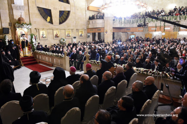 Προσευχόμαστε σήμερα για την ειρήνη και την ενότητα σε ολόκληρη τη Συρία και ευχόμαστε καλά Χριστούγεννα. Είθε να φέρει η γέννηση του Κυρίου την ένδοξη ειρήνη στα παιδιά αυτού του κομματιού της Ανατολής και όλου του κόσμου. Είθε αυτά τα Χριστούγεννα να έχουμε την ειρήνη του Παιδιού του σπηλαίου και τη χαρά των αγγέλων, που Το δοξολογούσαν. Είθε ο Κύριος να σας ευλογεί όλους και να σώσει το Χαλέπι και τα παιδιά του. Το 2014 ονομάσαμε αυτή την πόλη “ανθεκτικό Χαλέπι”. Τώρα την ονομάζουμε “αναγεννησιακό Χαλέπι”.