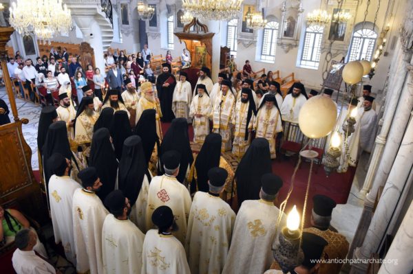 Xοροστάτησε ο Μακαριώτατος Πατριάρχης Αντιοχείας κ.κ. Ιωάννης Ι’ και συγχοροστάτησαν οι Σεβασμιώτατοι Μητροπολίτες Τύρου και Σιδώνος κ. Ηλίας, Βαγδάτης και Κουβέϊτ κ. Γαττάς, Μπουένος Άιρες κ. Ιάκωβος, Βερροίας και Αλεξανδρέττας κ. Εφραίμ, οι Θεοφιλέστατοι Επίσκοποι Νταράγιας κ. Μωυσής, Εμιράτων κ. Γρηγόριος, Σεργιουπόλεως κ. Ιωάννης, Ιεραπόλεως κ. Αρσένιος, Λαρίσσης κ. Μωυσής, ο εκπρόσωπος του Πατριάρχη Μόσχας στον Πατριάρχη Αντιοχείας στη Δαμασκό Αρχιμανδρίτης Φίλιππος Βασίλτσεφ, ο Καθηγούμενος της Ιεράς Πατριαρχικής Μονής της Παναγίας του Μπαλαμάντ Αρχιμανδρίτης Ρωμανός Χάνα, ο κοσμήτορας της Θεολογικής Σχολής του Μπαλαμάντ «Άγιος Ιωάννης ο Δαμασκηνός» Αρχιμανδρίτης Ιάκωβος Χαλίλ με τη συμμετοχή πλειάδας ιερέων και διακόνων.
