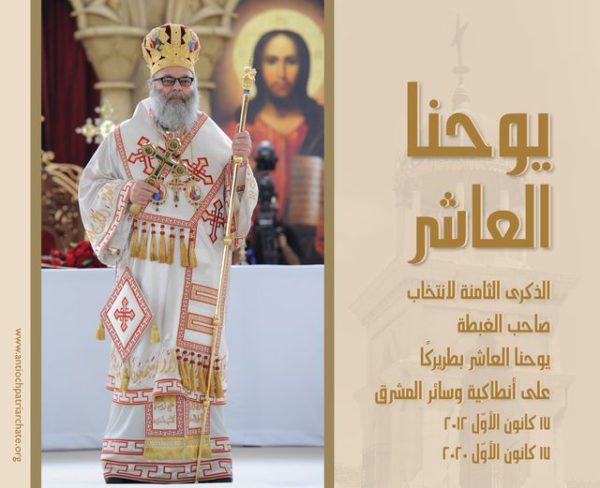 Την όγδοη Επέτειο της Εκλογής του εορτάζει ο Πατριάρχης Αντιοχείας κ.κ. Ιωάννης σήμερα, Πέμπτη 17 Δεκεμβρίου 2020, αφού το 2012 την ίδια ημερομηνίας εξελέγη Πατριάρχης.  Ο Μακαριώτατος κατά την ομιλία του την ημέρα της Εκλογής του είχε σημειώσει μεταξύ άλλων “Ο Ιησούς, είναι πανταχού παρών. Είναι πάντα μαζί μας έτοιμος να μας γνωρίσει. Απολαμβάνει τις χαρές μας και θρηνεί όταν έχουμε προβλήματα ή θλίψη. Κλαίει επίσης όταν οι ποιμένες και το κοπάδι παραμελούν να ζουν σύμφωνα με τον Λόγο Του… Αδελφοί, αυτή την ευλογημένη μέρα, που μου ανατίθεται ο σταυρός να ποιμαίνω την Μεγάλη Εκκλησίας της Αντιοχείας με την τόσο ένδοξη ιστορία, ας ενώσουμε τα χέρια μας και ας συνεργαστούμε για να αποκαλύψουμε και να βιώσουμε αυτήν τη Δόξα. Αυτό θα συμβεί ακούγοντας πρώτα τον Λόγο του Ιησού.”.