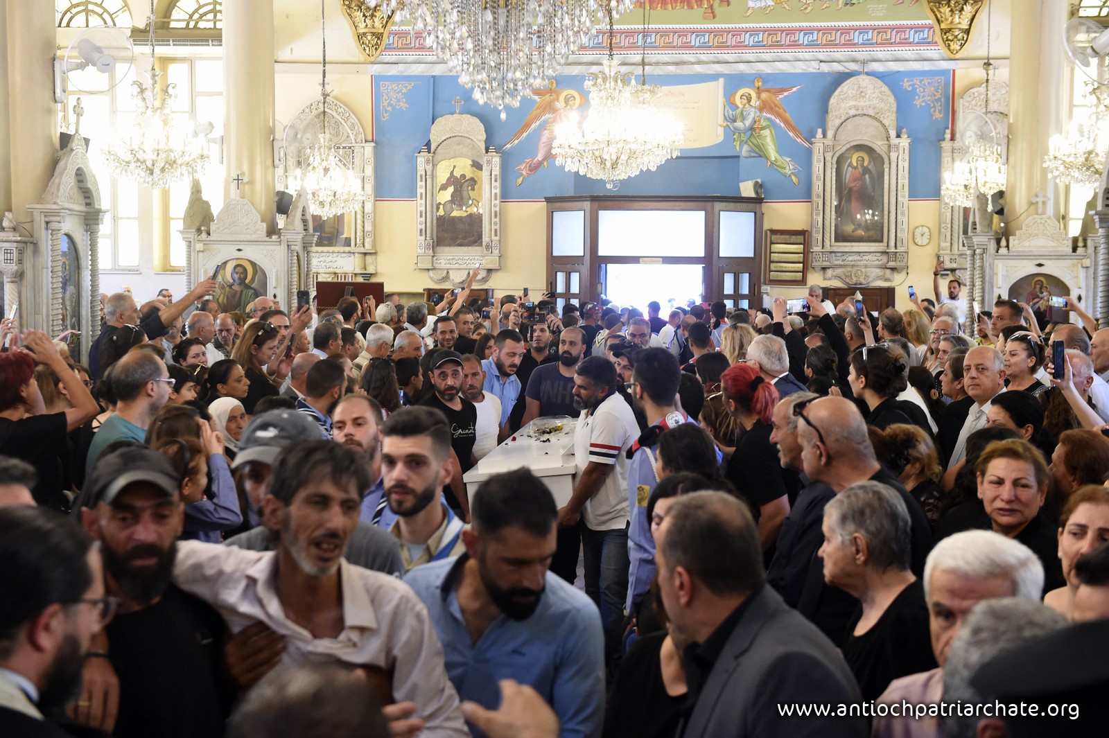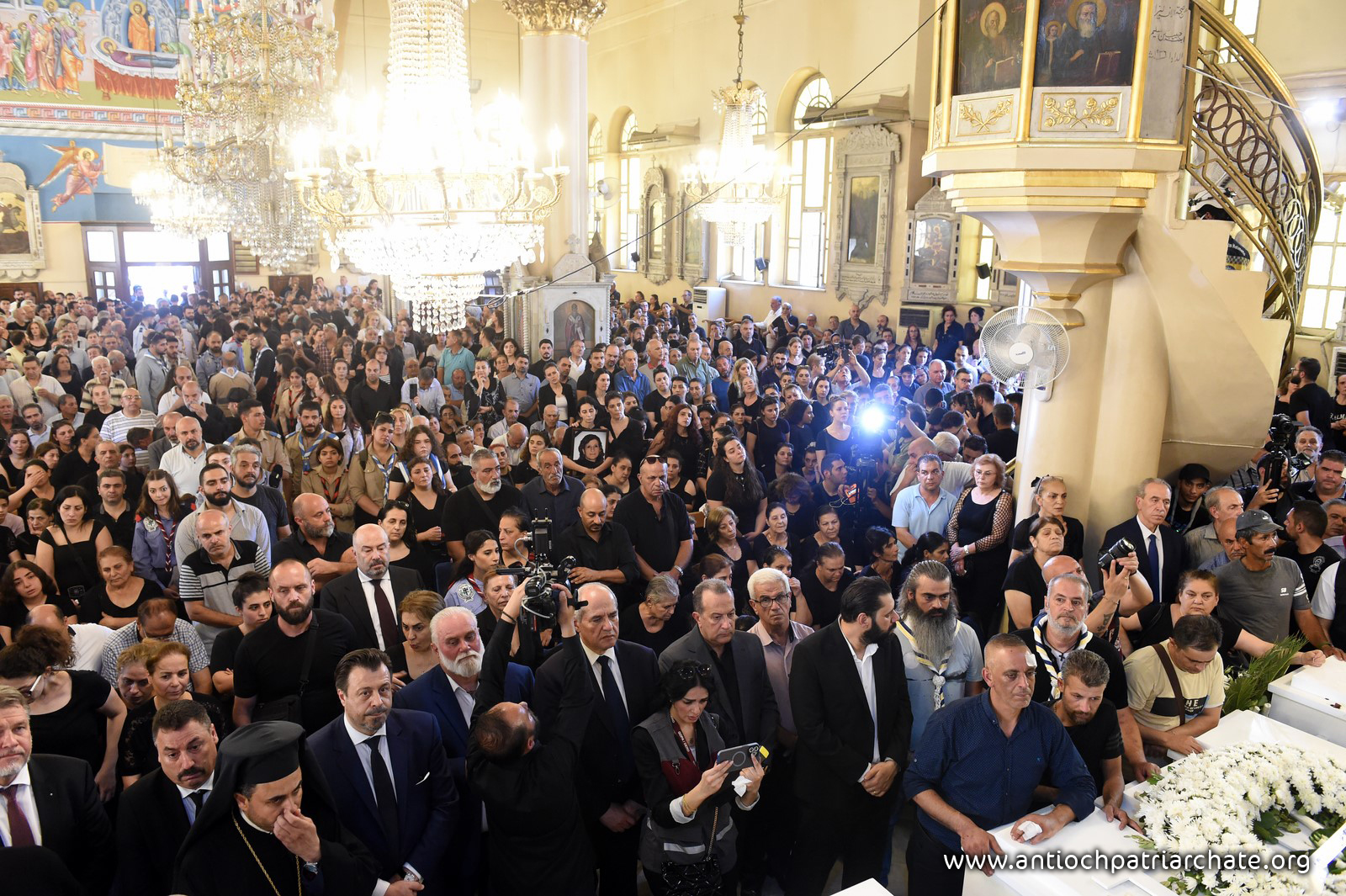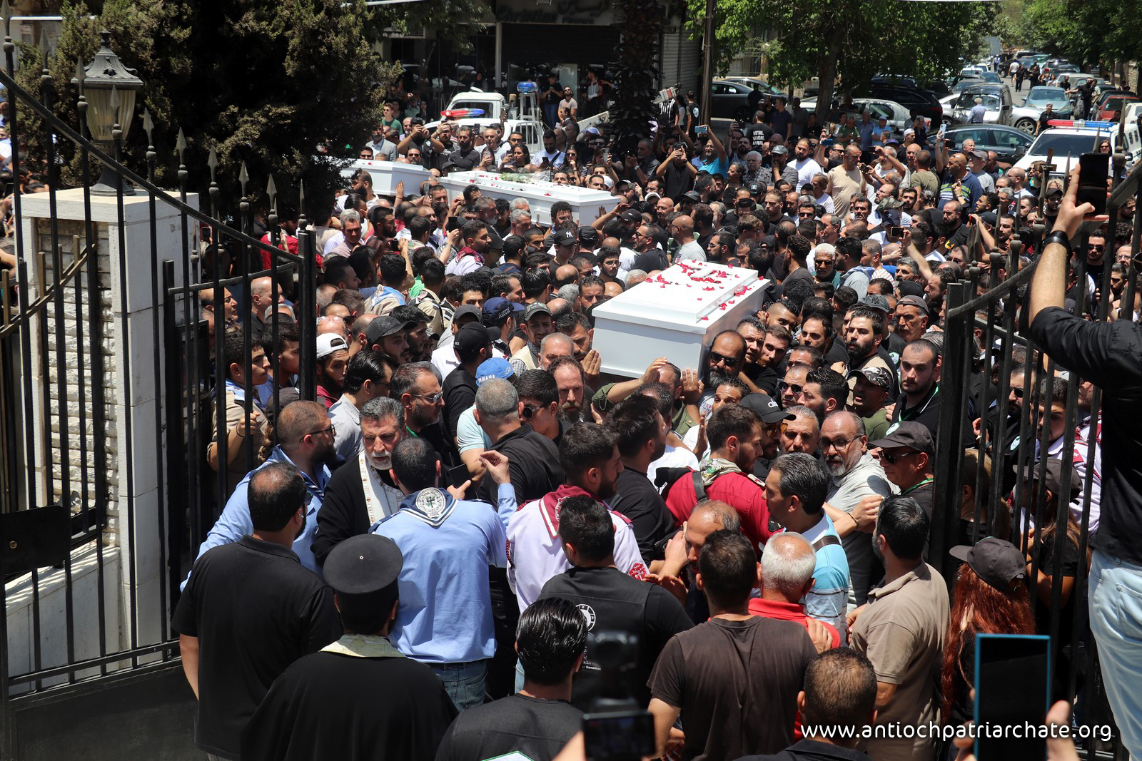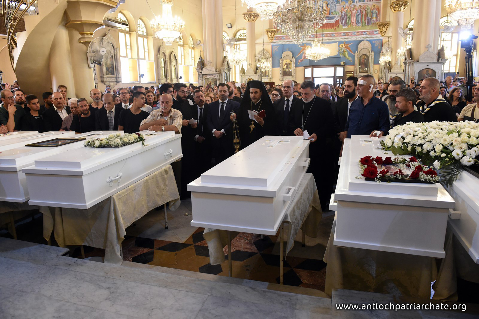 Ο Μακαριώτατος Πατριάρχης Αντιοχείας κ.κ. Ιωάννης, παρουσία Ιεραρχών, κληρικών και πλήθους πιστών τέλεσε, σήμερα το μεσημέρι στον Ιερό Ναό Τιμίου Σταυρού στην επαρχία Αλ-Κασάα, την Εξόδιο Ακολουθία των αθώων θυμάτων της τρομοκρατικής επίθεσης στον Προφήτη Ηλία Δαμασκού, ανάμεσα στα οποία ήταν και παιδιά.