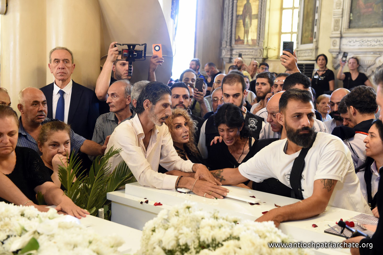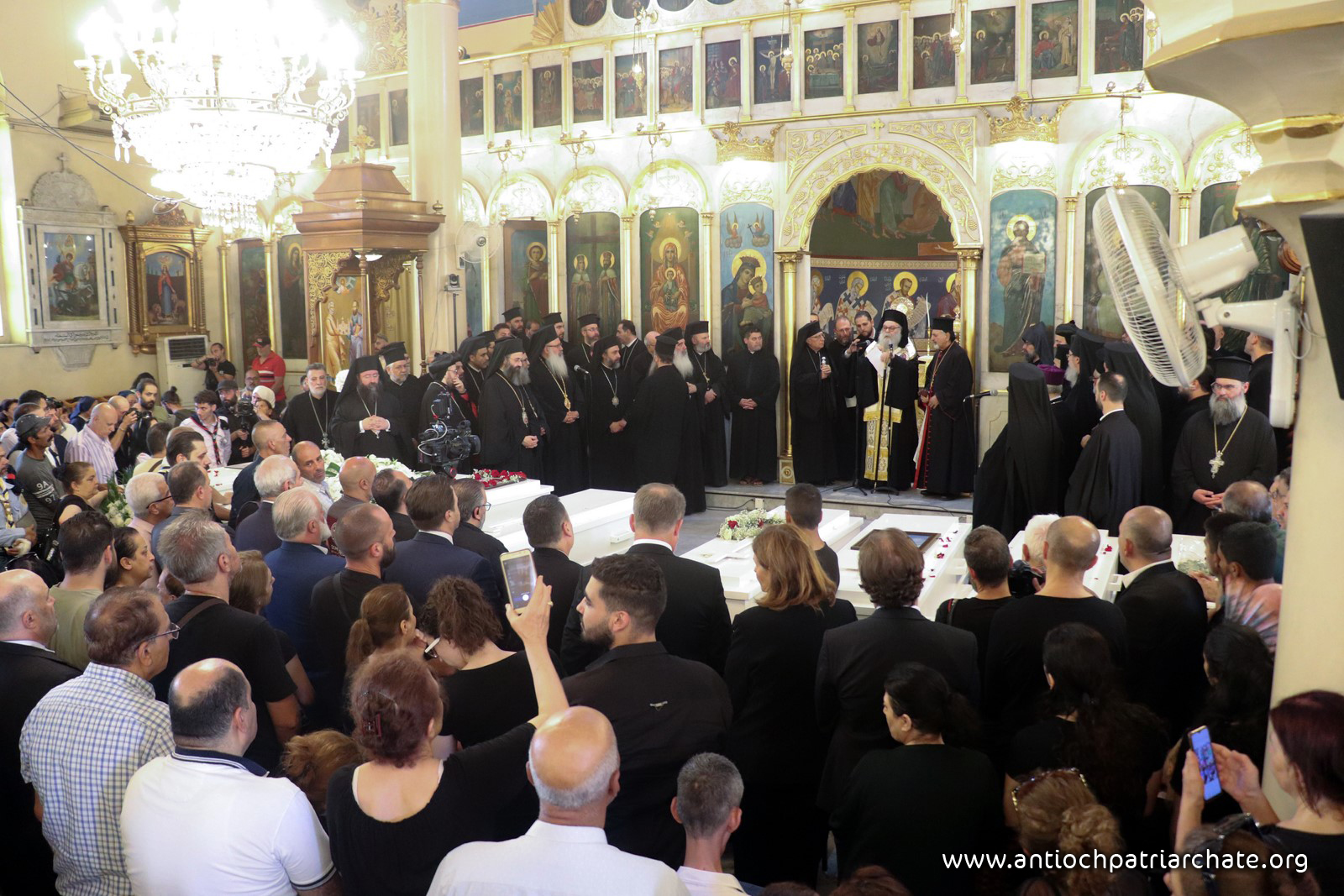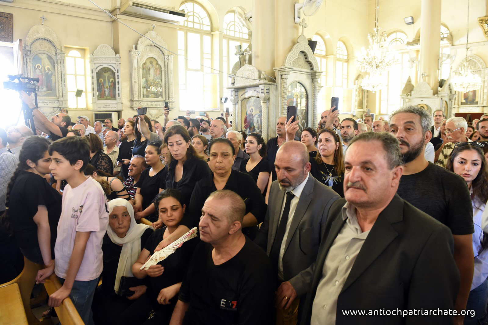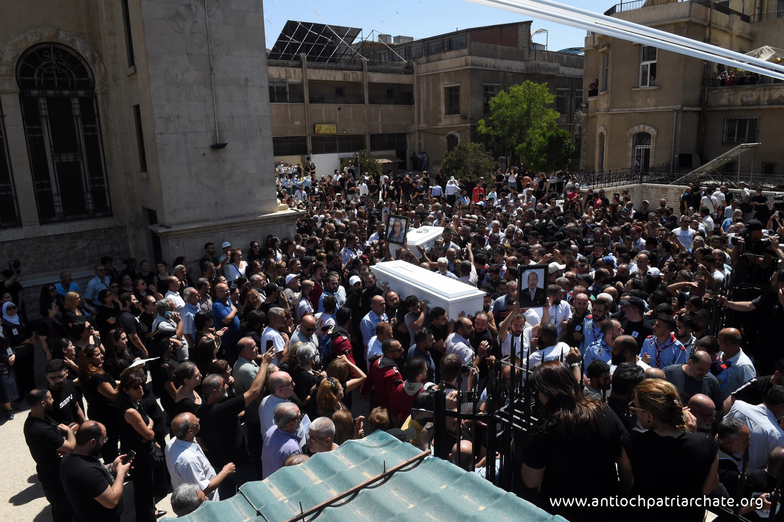 Ο Μακαριώτατος Πατριάρχης Αντιοχείας κ.κ. Ιωάννης, παρουσία Ιεραρχών, κληρικών και πλήθους πιστών τέλεσε, σήμερα το μεσημέρι στον Ιερό Ναό Τιμίου Σταυρού στην επαρχία Αλ-Κασάα, την Εξόδιο Ακολουθία των αθώων θυμάτων της τρομοκρατικής επίθεσης στον Προφήτη Ηλία Δαμασκού, ανάμεσα στα οποία ήταν και παιδιά.