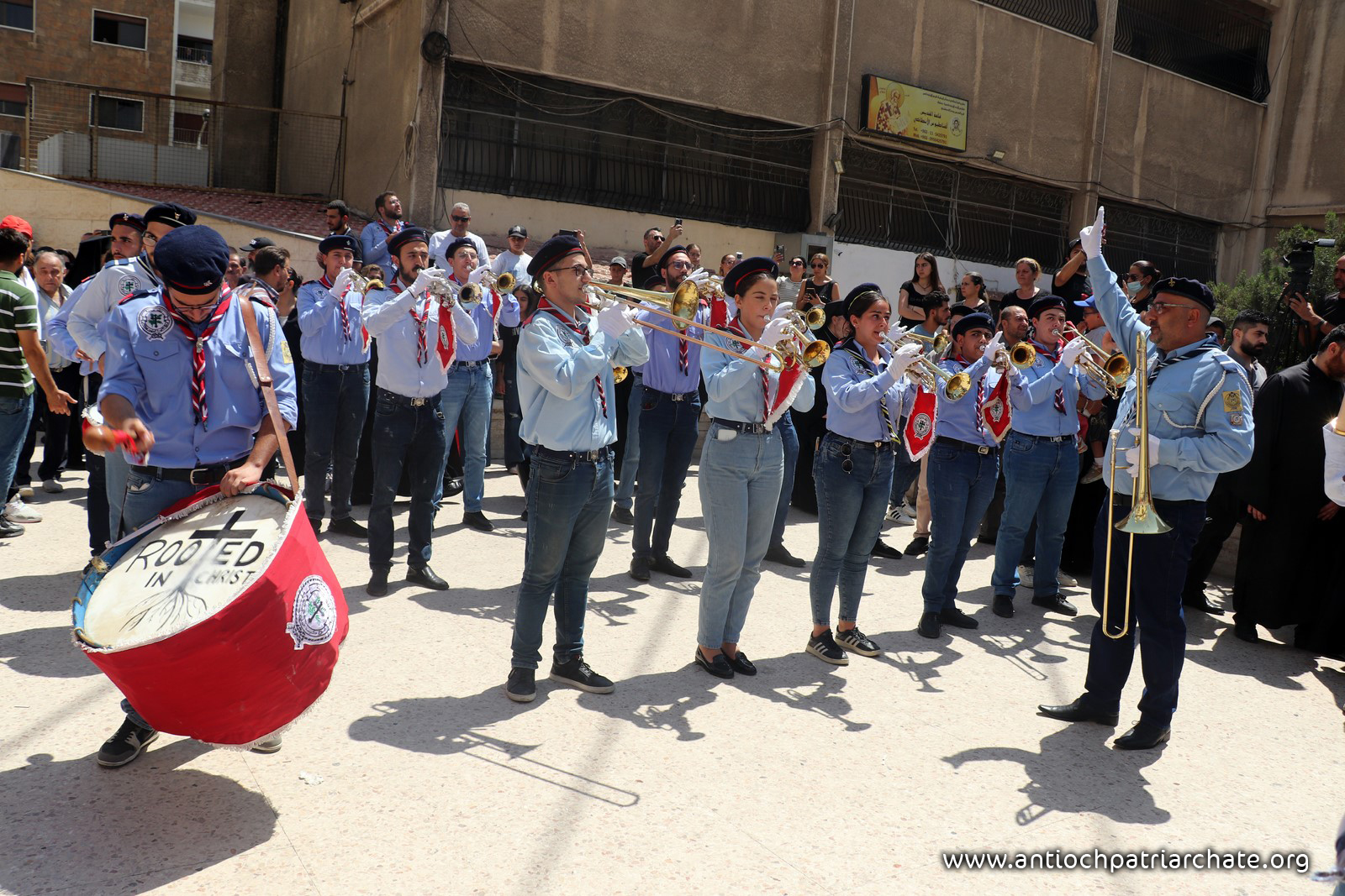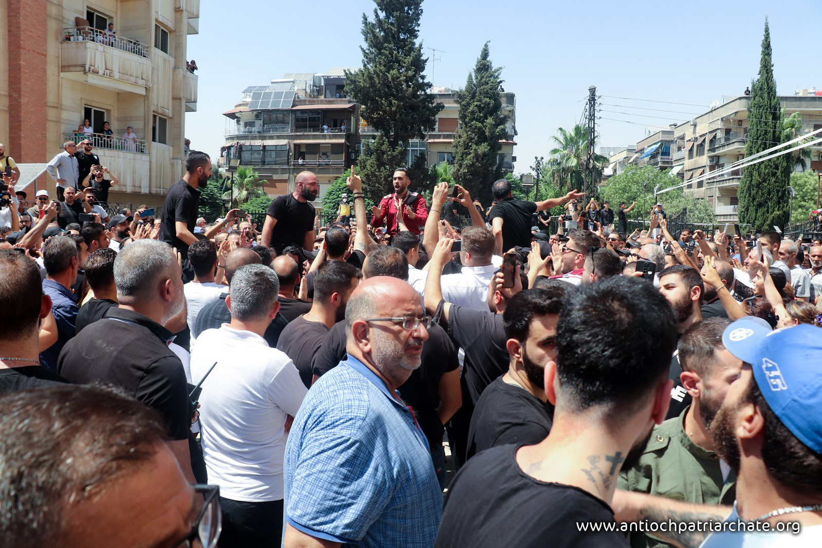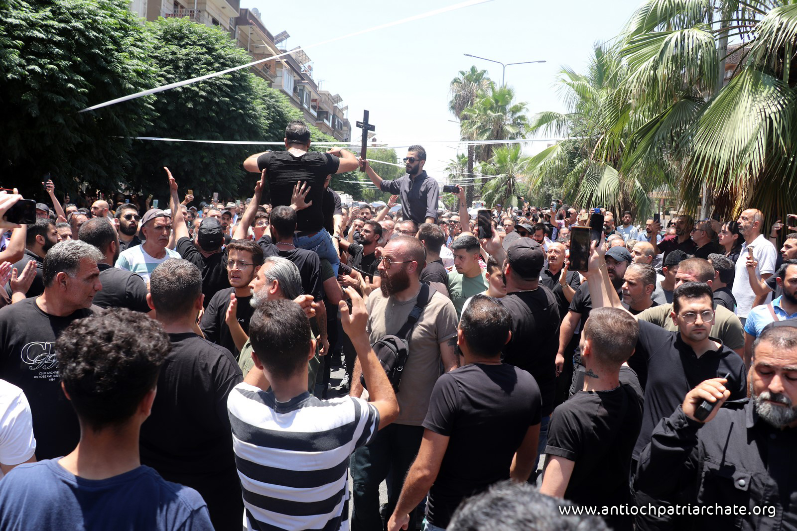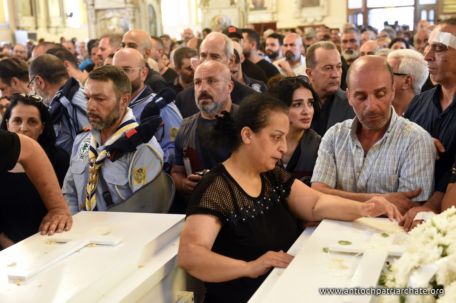 Ο Μακαριώτατος Πατριάρχης Αντιοχείας κ.κ. Ιωάννης, παρουσία Ιεραρχών, κληρικών και πλήθους πιστών τέλεσε, σήμερα το μεσημέρι στον Ιερό Ναό Τιμίου Σταυρού στην επαρχία Αλ-Κασάα, την Εξόδιο Ακολουθία των αθώων θυμάτων της τρομοκρατικής επίθεσης στον Προφήτη Ηλία Δαμασκού, ανάμεσα στα οποία ήταν και παιδιά.