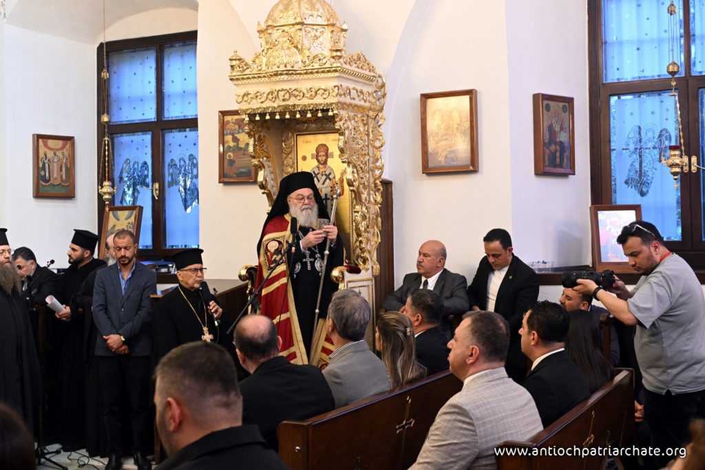 Παρέστησαν οι Μητροπολιτες Ακκάρ κ. Βασίλειος Μανσούρ, Λαττάκειας κ. Αθανάσιος, Γαλλίας-Δυτικής και Νότιας Ευρώπης κ. Ιγνάτιος, Χαλεπίου κ. Εφραίμ, Αγκύρας (Οικουμενικό Πατριαρχείο) κ. Γρηγόριος, ο Επίσκοπος Ιεραπόλεως κ. Αρσένιος, βοηθός Επίσκοπος του Πατριάρχη Αντιοχείας, πλήθος κληρικών και πιστών.