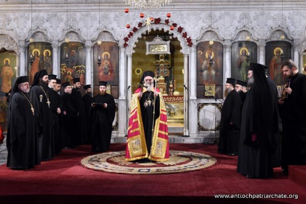 Στο Πατριαρχείο Αντιοχείας υποδέχθηκαν το νέο έτος με την τέλεση Θείας Λειτουργίας στον Καθεδρικό Ναό Κοιμήσεως της Θεοτόκου Δαμασκού, επί τη εορτή της Περιτομής του Κυρίου και της μνήμης του Αγίου Βασιλείου, Αρχιεπισκόπου Καισαρείας, στην οποία προεξήρχε ο Πατριάρχης κ.κ. Ιωάννης ενώ συλλειτούργησαν Επίσκοποι και πρεσβύτεροι της εν Αντιοχεία Ορθοδόξου Εκκλησίας.
