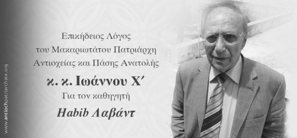 Ο Μακαριώτατος Πατριάρχης Αντιοχείας και πάσης Ανατολής κ.κ. Ιωάννης εκφώνησε τον επικήδειο λόγο κατά την Εξόδιο Ακολουθία του καθηγητή Habib Λαβάντ ο οποίος υπηρέτησε την Εκκλησίας της Αντιοχείας και υπήρξε γέφυρα μεταξύ του ελληνικού λαού και της Ορθοδοξίας της Αντιόχειας.