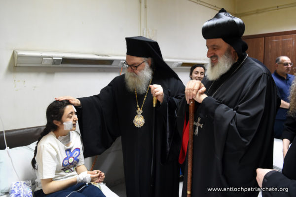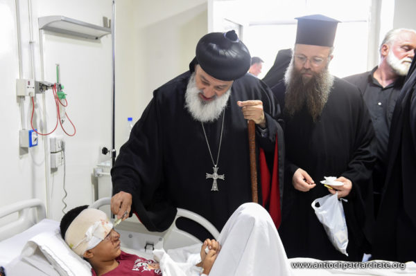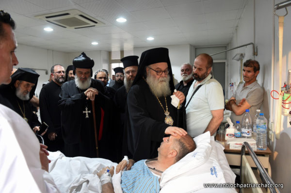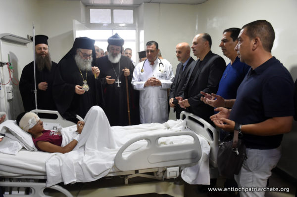 Στη συνέχεια, ο Μακαριώτατος και ο Συρορθόδοξος Πατριάρχης Αντιοχείας και πάσης Ανατολής κ. Ιγνάτιος-Εφραίμ Β’ επισκέφθηκαν τους τραυματίες στα νοσοκομεία. Εκεί μοίρασαν ευλογίες και άλειψαν τους τραυματίες με μύρο.