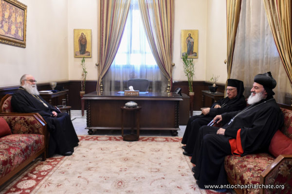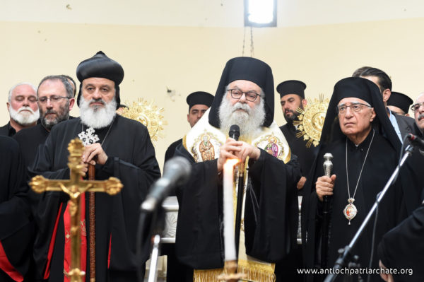 Ο Μακριώτατος κατέφθασε στον Ιερό Ναό χθες στις 6:00 μ.μ. τοπική ώρα συνοδευόμενος από τον Συρορθόδοξο Πατριάρχη Αντιοχείας και πάσης Ανατολής κ. Ιγνάτιο-Εφραίμ Β’ και τον Μελχίτη Πατριάρχη Αντιοχείας και πάσης Ανατολής κ. Ιωσήφ.