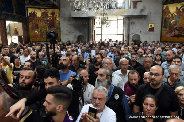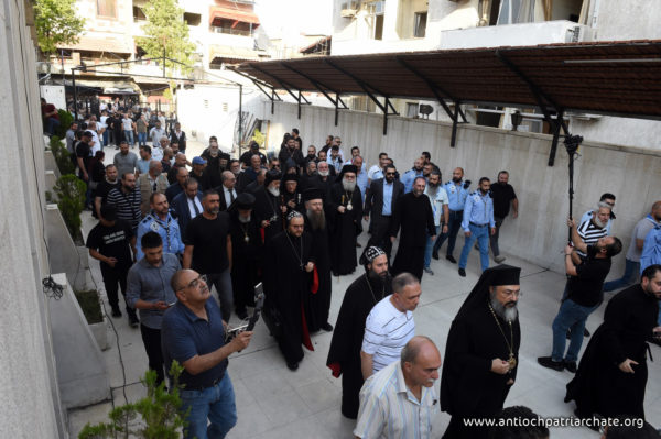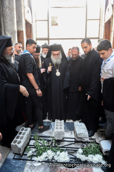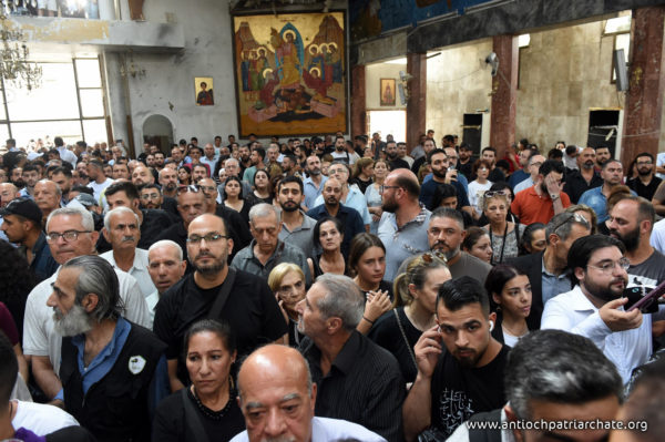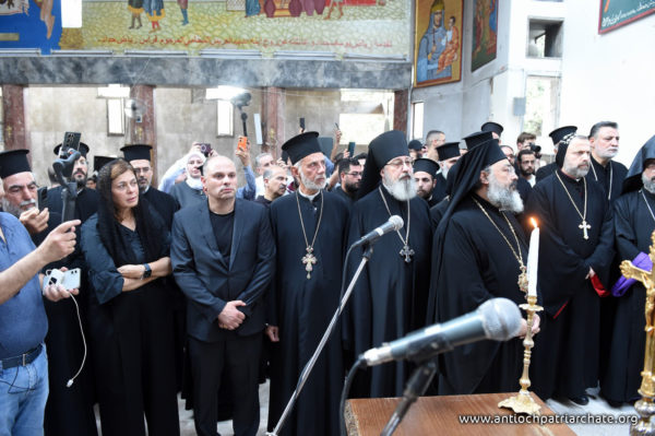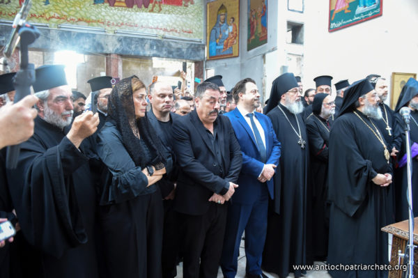 Ο Μακαριώτατος Πατριάρχης Αντιοχείας κ. Ιωάννης, παρουσία Ιεραρχών, κληρικών και πλήθους πιστών τέλεσε, σήμερα το μεσημέρι στον Ιερό Ναό Τιμίου Σταυρού στην επαρχία Αλ-Κασάα, την Εξόδιο Ακολουθία των αθώων θυμάτων της τρομοκρατικής επίθεσης στον Προφήτη Ηλία Δαμασκού, ανάμεσα στα οποία ήταν και παιδιά.