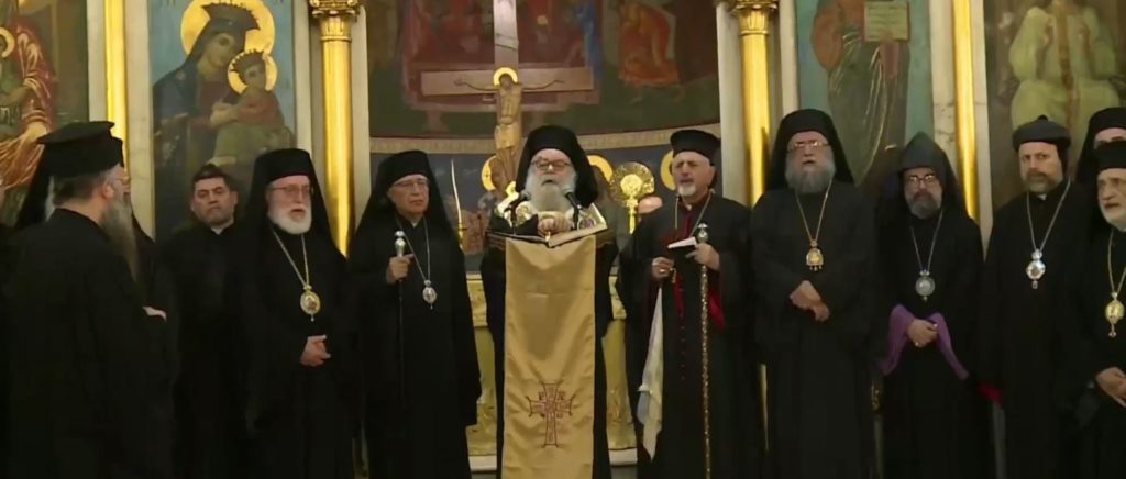 Δέηση υπέρ αναπαύσεως των αδικοχαμένων ψυχών από την τρομοκρατική επίθεση, την ίαση των τραυματισμένων και την παρηγοριά των πενθούντων τέλεσε χθες το απόγευμα ο Μακαριώτατος στην μαρτυρική εκκλησία του Προφήτη Ηλία. Το “Χριστός Ανέστη” στα ελληνικά έψαλλαν οι πιστοί που κατέκλυσαν τον ναό για να προσευχηθούν. «Ματώνουν οι καρδιές μας για τους αγαπημένους μας μάρτυρες που χάσαμε», είπε μεταξύ άλλων ο Μακαριώτατος.