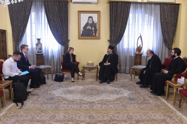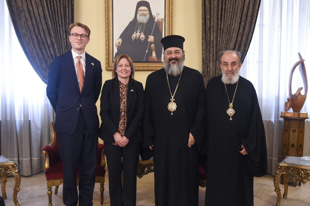 Η Πρέσβης έγινε δεκτή από τον Επίσκοπο κ. Ρωμανό Al Hannat και τον Επίσκοπο κ. Μωυσή (Αλ-Χούρι) του Πατριαρχείου Αντιοχείας.