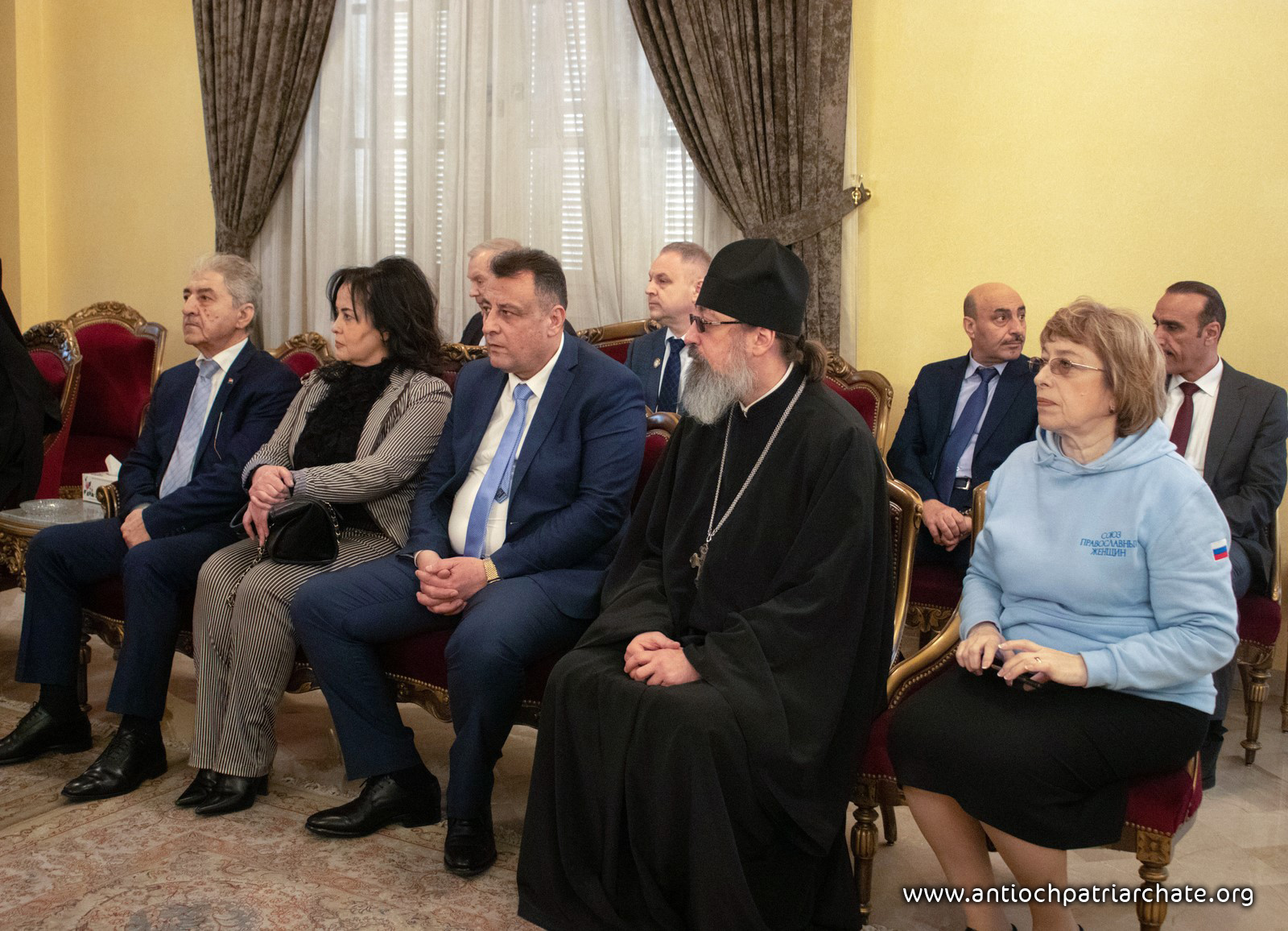 Στη συνάντηση συμμετείχαν οι Επίσκοποιτου Πατριαρχείου Αντιοχείας, ο Ρώσος Πρέσβης στη Δαμασκό, μέλη της Διεθνούς Κοινωνικής Οργάνωσης της Ένωσης Ορθοδόξων Γυναικών,ο Πρόεδρος της Κοινοβουλευτικής Επιτροπής Φιλίας Συρίας-Ρωσίας στη Βουλή και άλλα μέλη του Κοινοβουλίου. Στη συνέχεια, η αντιπροσωπεία ξε στον ξεναγήθηκε στον Καθεδρικό Ναό της Δαμασκού.