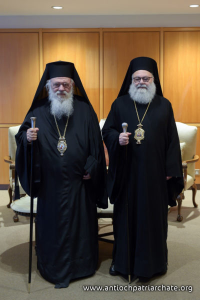 Στη συνέχεια ο Πατριάρχης Αντιοχείας, σε άπταιστα ελληνικά καθώς έχει σπουδάσει στη χώρα μας, παρουσίασε τους παρευρισκόμενους Ιεράρχες και κληρικούς και εξέφρασε για ακόμη μία φορά τις ευχαριστίες του εκ μέρους και της Ιεράς Συνόδου του Πατριαρχείου Αντιοχείας.