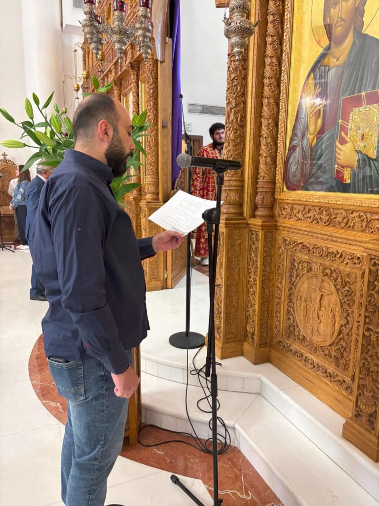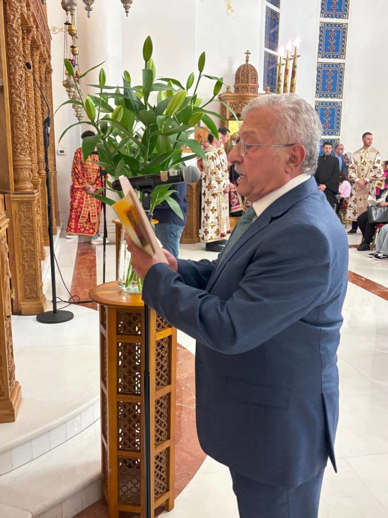 Τον Προκαθήμενο της Εκκλησίας της Αντιόχειας προσφώνησε και καλωσόρισε στην ιστορική ημέρα ο Αρχιεπίσκοπος Κατάρρων κ. Μακάριος, μεταφέροντας την αδελφική αγάπη του Πατριάρχη Ιεροσολύμων κ.κ. Θεοφίλου. Ο Σεβασμιώτατος προσέφερε σε ανάμνηση της Πατριαρχικής χοροστασίας και επίσκεψης στο ναό συμβολικά δώρα, με τον Μακαριώτατο να εκφράζει τις ευχαριστίες του.