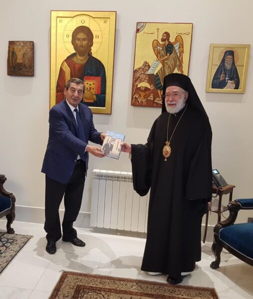 Παράλληλα, ο Λιβανέζος αξιωματούχος ευχήθηκε στον Σεβασμιώτατο για την πρόσφατη ονομαστική εορτή του, ενώ του έκανε δώρο ένα αντίγραφο του βιβλίου του, το οποίο αποτελεί καταγραφή της πολιτικής σταδιοδρομίας του.