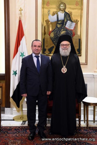 Ο Πατριάρχης Αντιοχείας κ.κ. Ιωάννης υποδέχθηκε τον υπουργό Τοπικής Διοίκησης και Περιβάλλοντος της Συρίας κ. Χουσεΐν Μαχλούφ στην Πατριαρχική έδρα στη Δαμασκό.