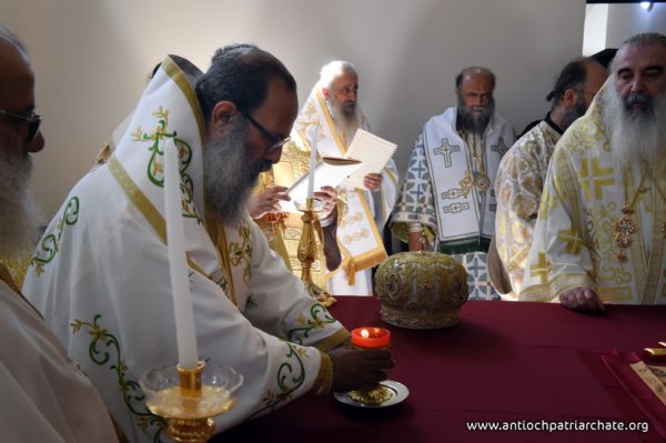 Στην Πατριαρχική Θεία Λειτουργία συλλειτούργησαν Επίσκοποι και ιερείς του Πατριαρχείου Αντιοχείας ενώ συμμετείχε πλήθος κόσμου. Τα εγκαίνια τελέστηκαν από τον Προκαθήμενο της Αντιοχειανής Εκκλησίας ο ο οποίος αναφέρθηκε στην ομιλία του στο μεγάλο αυτό πνευματικό γεγονός καθώς ένας τόπος λατρείας καθαγιάστηκε για να δοξάζεται το όνομα του Τριαδικού Θεού και ο λαός να συνάζεται και να λαμβάνει μέρος στις ακολουθίες και τα μυστήρια της Εκκλησίας.