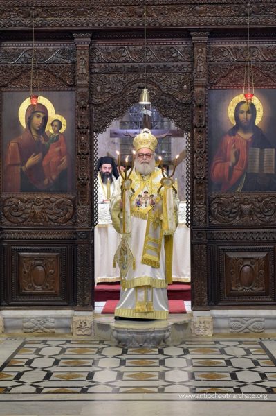 Ο Μακαριώτατος πλαισιώθηκε χθες από τους Σεβασμιωτάτους Μητροπολίτες, Όρους Λιβάνου κ. Σιλουανό, Γαλλίας κ. Ιγνάτιο, Μ. Βρετανίας κ. Σιλουανό, Αυστραλίας κ. Βασίλειο, Μεξικού κ. Ιγνάτιο, Αργεντινής κ. Ιάκωβο, Λαοδικείας κ. Αθανάσιο, Χαλεπίου κ. Εφραίμ, και τους Θεοφιλεστάτους Επισκόπους, κ. Γρηγόριο και κ. Μωυσή.