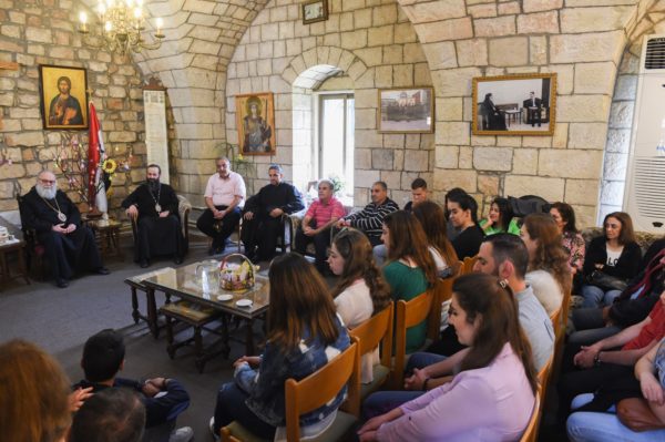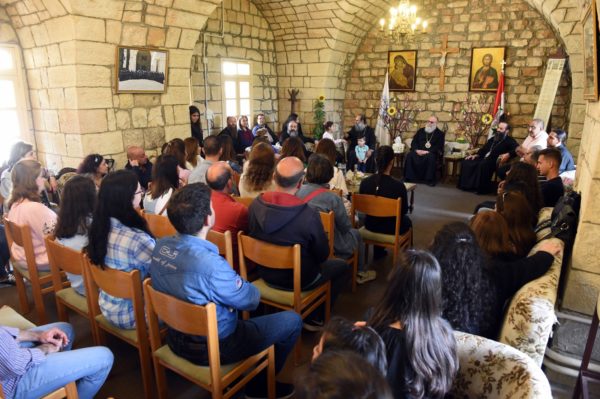 Στη Θεία Λειτουργία συμμετείχαν μαθητές του Προγράμματος του Αγίου Ιωάννη του Δαμασκηνού για τον Χριστιανικό Σχηματισμό στη Δαμασκό, οι οποίοι παρακολουθούν μαθήματα στο Μοναστήρι του Αγίου Γεωργίου Αλ-Χουμάιρα.