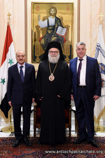 Ο Πατριάρχης Αντιοχείας κ.κ. Ιωάννης υποδέχθηκε τους υπουργούς Μέσων Ενημέρωσης κ. Peter Al-Halbar και Εσωτερικών της Συρίας κ. Mohamed Khaled Al-Rahmoun (Μοχάμεντ Χάλεντ Ραχμών), στην Πατριαρχική έδρα στη Δαμασκό.