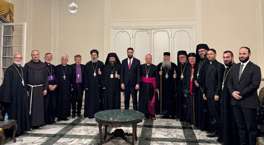 Στο πλαίσιο του εθνικού διαλόγου που διεξάγεται μετά τις ραγδαίες εξελίξεις και την ανατροπή του καθεστώτος Άσαντ τον περασμένο Δεκέμβριο, ο Πρόεδρος της Συρίας συνομίλησε με τους Χριστιανούς ηγέτες κατόπιν επανειλημμένων αιτημάτων για μία Συρία χωρίς αποκλεισμούς και διακρίσεις για εθνοτικούς, θρησκευτικούς ή άλλους λόγους.