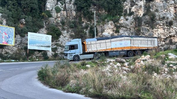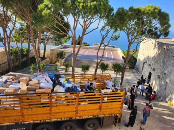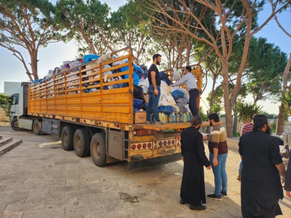 Η επιχείρηση φόρτωσης των πακέτων στο φορτηγό πραγματοποιήθηκε την Παρασκευή στην Ιερά Πατριαρχική Μονή Παναγίας του Μπαλαμάντ του Λιβάνου, με τη βοήθεια κάποιων μαθητών της Θεολογικής Σχολής Αγίου Ιωάννου Δαμασκού.