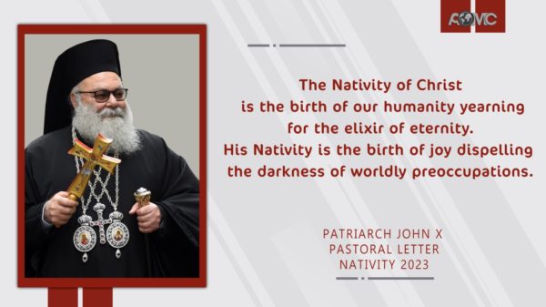 “Αυτή η γη Τον δέχτηκε ως παιδί σε ένα σπήλαιο, σταυρώθηκε στο Γολγοθά, και ανέστη εκ του τάφου. Αυτή η Ανατολή μας είναι κάτι περισσότερο από μια γη, είναι η ταυτότητα, η ύπαρξη για εμάς τους χριστιανούς της Αντιόχειας”, αναφέρει, μεταξύ άλλων, στο μήνυμά του.