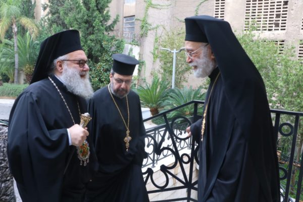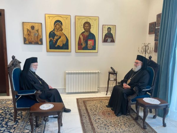 Ο Μακαριώτατος επισκέφθηκε χθες, Τρίτη 10 Οκτωβρίου, την έδρα της Ιεράς Μητρόπολης Βηρυτού όπου έγινε δεκτός από τον Σεβασμιώτατο Ποιμενάρχη κ. Ηλία με τον οποίο συζήτησε για την επικείμενη συνεδρίαση της Ιεράς Συνόδου της Εκκλησίας της Αντιόχειας η οποία θα διεξαχθεί την ερχόμενη εβδομάδα στο Μπαλαμάντ του Λιβάνου, αλλά και για την κατάσταση βίας και τρόμου που επικρατεί από το Σάββατο το πρωί στη Μέση Ανατολή.