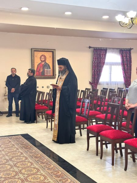 Το βράδυ, ο Αρχιμ. π. Ιάκωβος τέλεσε το Μέγα Απόδειπνο στην αίθουσα του Ιερού Ναού της Παναγίας στην Αλ Σουεϊντίγια, ο οποίος κατεδαφίστηκε εντελώς από τον σεισμού του Φεβρουαρίου του 2023.