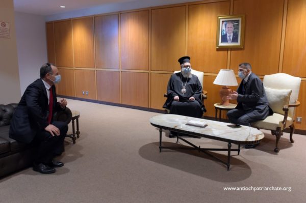 Κατά τη σύντομη παραμονή του στο αεροδρόμιο ο Πατριάρχης Αντιοχείας συνομίλησε με τους Διπλωμάτες και όσους τον υποδέχτηκαν.