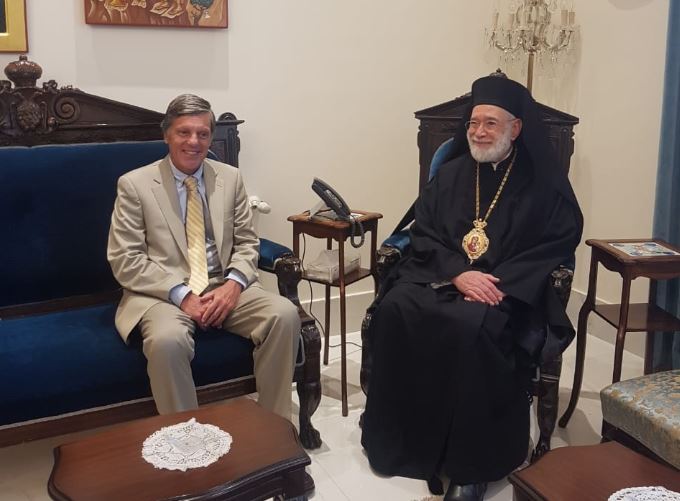 Με τον Σεβασμιώτατο Μητροπολίτη Βηρυτού του Πατριαρχείου της Αντιοχείας, κ. Ηλία, συναντήθηκε σήμερα 19 Σεπτεμβρίου ο Έλληνας Πρέσβης στο Λίβανο κ. Φραγκίσκος Βέρρος.