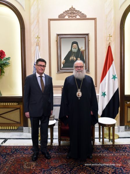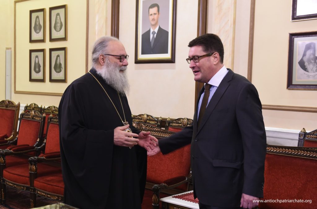 Τον νέο διπλωμάτη υποδέχθηκε ο Πατριάρχης Αντιοχείας κ.κ. Ιωάννης ο οποίος του ευχήθηκε καλή επιτυχία στο έργο του ζητώντας παράλληλα και τρόπους συνεργασίας έτσι ώστε να συνεχιστεί η επικοινωνία των δύο πλευρών.