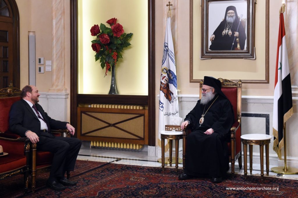 Συνάντηση με τον επικεφαλής της Αυστριακής Διπλωματικής Αποστολής στη Συρία, Δρ. Πέτερ Κρόης, είχε σήμερα στην έδρα του Πατριαρχείου Αντιοχείας στη Δαμασκό ο Πατριάρχης κ.κ. Ιωάννης.