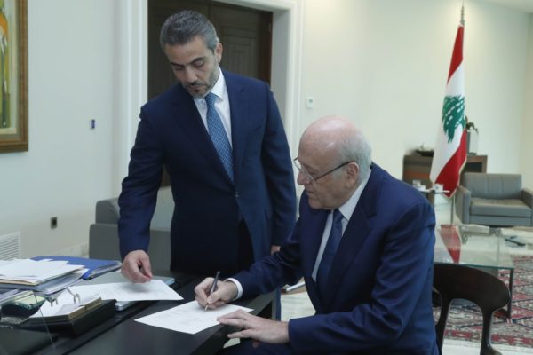 Ο πρόεδρος Μισέλ Αούν και ο νέος πρωθυπουργός Νατζίμπ Μικάτι «υπέγραψαν το διάταγμα για το σχηματισμό της νέας κυβέρνησης παρουσία του προέδρου του κοινοβουλίου Ναμπίχ Μπέρι», ανακοινώθηκε από την προεδρία μέσω του λογαριασμού της σε μέσο κοινωνικής δικτύωσης.