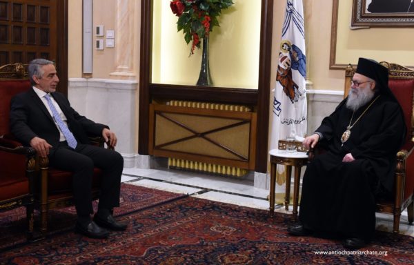 Νωρίτερα, ο Προκαθήμενος της εν Αντοχεία Ορθοδόξου Εκκλησίας δέχθηκε τον Πρέσβη της Ελλάδας στη Δαμασκό, κ. Νικόλαο Πρωτονοτάριος, με τον οποίο συζήτησαν θέματα κοινού ενδιαφέροντος .