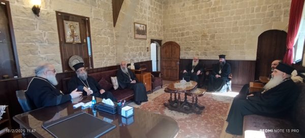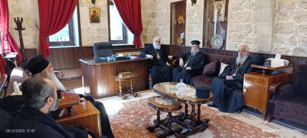 Στη συνάντηση που πραγματοποιήθηκε στην Ιερά Μονή Αγίου Γεωργίου του Χειμάρρου στη Συρία την Τρίτη 18 Φεβρουαρίου 2025, συμμετείχαν οι Σεβασμιώτατοι Μητροπολίτες Αρκαδίας κ. Βασίλειος, Επιφανείας κ. Νικόλαος, Λαοδικείας κ. Αθανάσιος, Βερροίας και Αλεξανδρέττας κ. Εφραίμ, Εμμέσης κ. Γρηγόριος και Βόστρων κ. Αντώνιος.