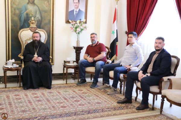 Ο Μακαριώτατος Πατριάρχης Αντιοχείας κ.κ. Ιωάννης υποδέχθηκε την Τρίτη 13 Ιουνίου 2023 στην κατοικία του στη Δαμασκό τον εκπρόσωπο του Πατριάρχη Μόσχας παρά τω Πατριάρχη Αντιοχείας Αρχιμανδρίτη Φίλιππο Βασίλτσεφ, τον Πρέσβη της Ρωσίας στη Συρία Αλεξάντερ Εφίμοφ μαζί με στελέχη της Πρεσβείας, καθώς και τον Εκτελεστικό Διευθυντή του Ιδρύματος Υποστηρίξεως Χριστιανικής Κληρονομιάς και Πολιτισμού E.I. Σκοπένκο.