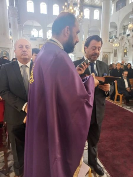 Στη Θεία Λειτουργία παρέστησαν ο κ. Πρέσβυς Εμμανουήλ Κακαβελάκης, Επιτετραμμένος της Ελλάδος στη Συρία, ο Διευθύνων το Προξενικό Γραφείο κ. Βασίλειος Γαλάνης και άλλοι υπάλληλοι της Πρεσβείας, καθώς και το Δ.Σ. της Ελληνικής Κοινότητας Δαμασκού, άλλα μέλη της Κοινότητας και πλήθος πιστών.