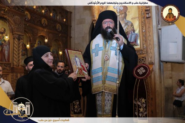 Από την πλευρά του ο Σεβασμιώτατος κ. Εφραίμ ευχαρίστησε την Καθηγουμένη της Μονής για την άδεια που έδωσε έτσι ώστε η Εικόνα της Παναγίας Σεϊντνάγιας να φτάσει στο Χαλέπι μετά από σειρά ετών και έχοντας προηγηθεί ο πόλεμος, η απαγωγή του Μητροπολίτη Ιωάννη η τύχη του οποίου ακόμη αγνοείται, αλλά και ο πρόσφατος σεισμός που άφησε πίσω του νεκρούς και ερείπια.