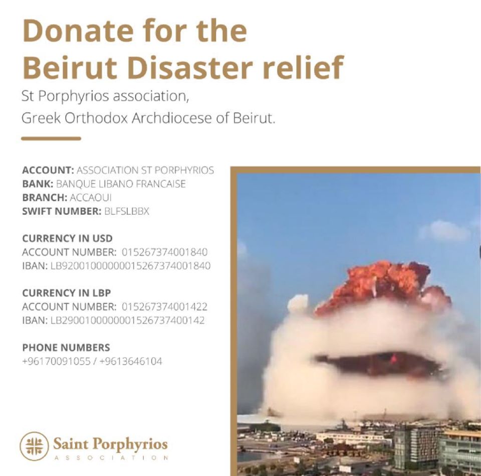 Η Μητρόπολη Βηρυτού και ο Σεβασμιώτατος Μητροπολίτης κ. Ηλίας καλούν όσους μπορούν να συνδράμουν για την στήριξη του νοσοκομείου του Αγίκου Γεωργίου, των ναών, των σχολείων και κοινωνικών ιδρυμάτων που ανήκουν στην Ορθόδοξη Εκκλησίας.
