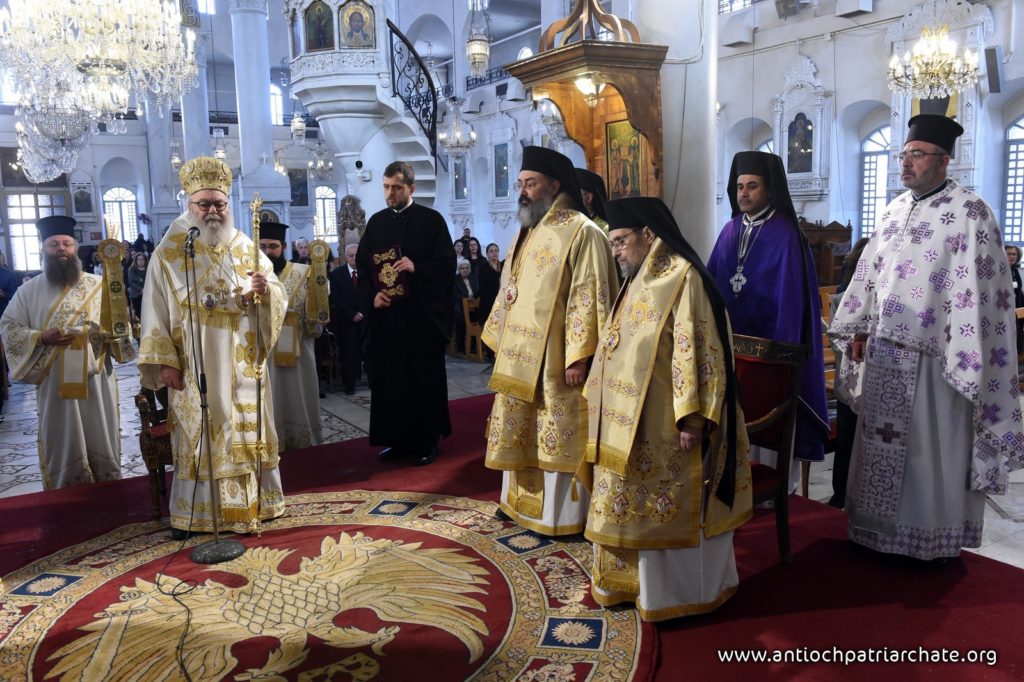 Παρόντες στη Θεία Λειτουργία ήταν ο Πρέσβης της Ελλάδος στη Δαμασκό κ. Εμμανουήλ Κακαβηλάκης. Τον Μακαριώτατο πλαισίωσαν οι Θεοφιλέστατοι Eπίσκοποι κ. Νικόλαος (Αμαθούντος, από την Ιερά Μητρόπολη Λεμεσού – Εκκλησία της Κύπρου), κ. Ρωμανός (Αλ-Χανάτ), κ. Μωυσής (Αλ-Χούρι), κ. Ιωάννης (Μπάτας), κ. Αρσένιος (Ντάχνταλ), καθώς και οι Πανοσιολογιώτατοι Αρχιμανδρίτες π. Ισαάκ, π. Βαρνάβας (εκ της Εκκλησίας της Κύπρου), και ο Καθηγούμενος της Ιεράς Πατριαρχικής Μονής Αγίου Γεωργίου στο Χουμεϊρά Πανοσιολ. Αρχιμ. π. Γεράσιμος Καμπάς, και πλήθος ιερέων και διακόνων.