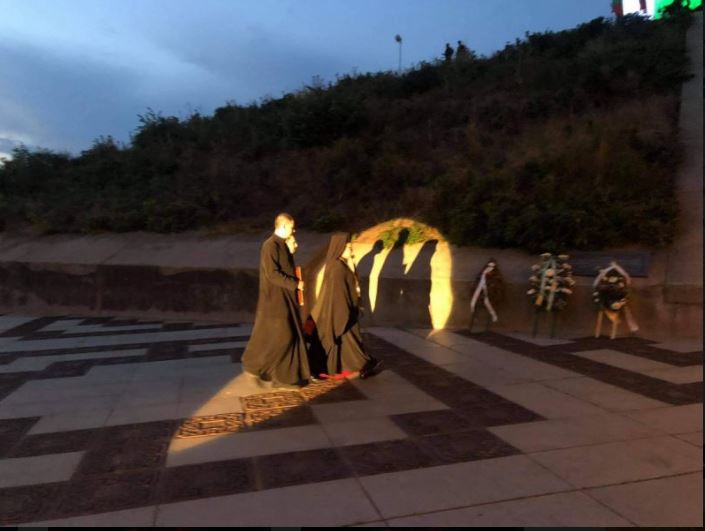 Κατατέθηκαν στεφάνια και η βραδιά έκλεισε με πυροτεχνήματα.