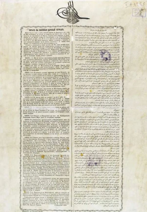 Στις 28 Φεβρουαρίου 1870 συστήθηκε η Βουλγαρική Εξαρχία ως αυτόνομη Ορθόδοξη Εκκλησία με σουλτανικό φιρμάνι, του σουλτάνου Αμπντούλ Αζίζ. Με την ίδρυση της βουλγαρικής εξαρχίας ξεκίνησε η δημιουργία του βουλγαρικού έθνους – κράτους ως εκκλησιαστικής, κατ’ αρχάς, οντότητας σε συγκεκριμένες επαρχίες.