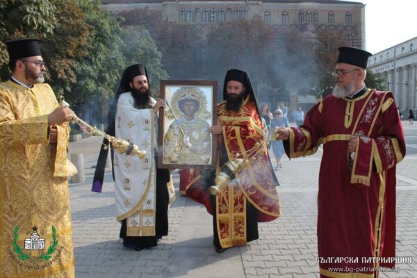 Αρχιερατική Θεία Λειτουργία επί τη ελεύση του αντιγράφου της Ιεράς Εικόνος του Αγίου Γεωργίου του Τροπαιοφόρου από την Ιερά Πατριαρχική και Σταυροπηγιακή Μονή (Αγίου Γεωργίου) Ζωγράφου του Αγίου Όρους, που ήρθε για να μείνει στον ναό, τελέστηκε χθες, 2 Σεπτεμβρίου, στη Ροτόντα του Αγίου Γεωργίου στη Σόφια.