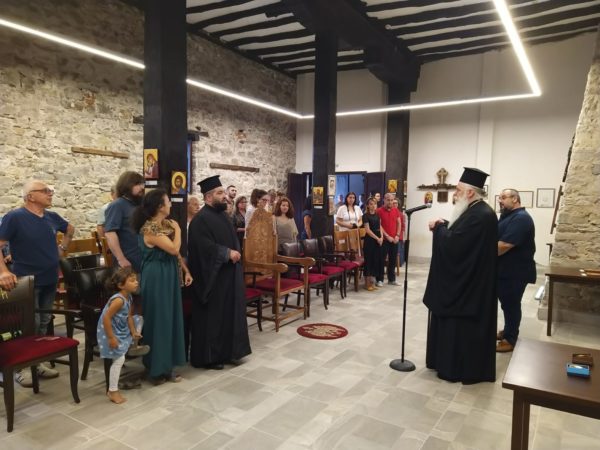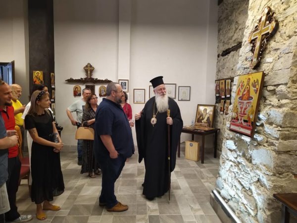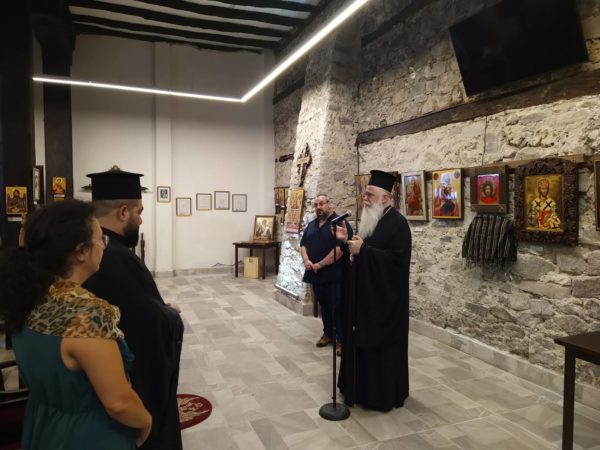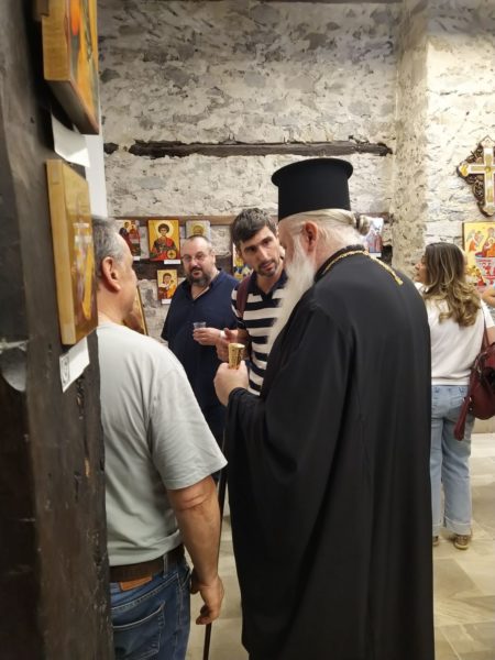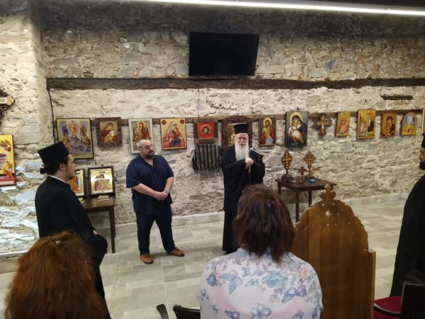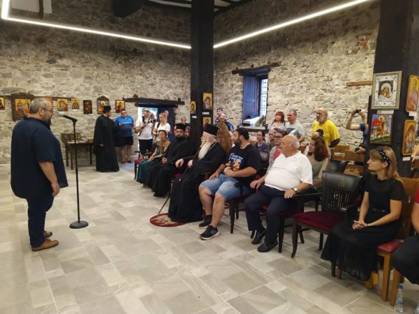 Στη σύντομη ομιλία του στα εγκαίνια, ο Καθηγούμενος της Μονής Επίσκοπος Βελίκης κ. Σιώνιος συνεχάρη τους συμμετέχοντες για την προσήλωσή τους στην τέχνη πνευματικού περιεχομένου, συμβάλλοντας με αυτό τον τρόπο στην πιο άμεση επαφή των πιστών με τις αξίες της Ορθόδοξης πίστης.