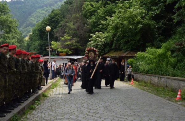 Με την ευλογία του Μακαριωτάτου Πατριάρχη Βουλγαρίας κ.κ. Νεοφύτου και του Σεβασμιωτάτου Μητροπολίτη Πλόβντιβ κ. Νικολάου, ο Σεβασμιώτατος Μητροπολίτης Στάρα Ζαγκόρας κ. Κυπριανός ηγήθηκε της Ιεράς πομπής μαζί με τους πιστούς. Οι πιστοί υποδέχτηκαν την Ιερά Εικόνα της Παναγία στην είσοδο του Μοναστηριού του Μπάτσκοβο μαζί με τον Ηγούμενο και την Μοναστική αδελφότητα ενώ ψάλλοντας το “Χριστός Ανέστη” έφτασαν εντός του Ναού.
