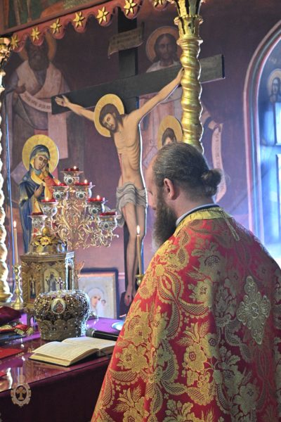 Μαζί με το Θεοφιλέστατο συλλειτούργησαν οι εφημέριοι του Ναού και ο διάκονος π. Πέτρος.