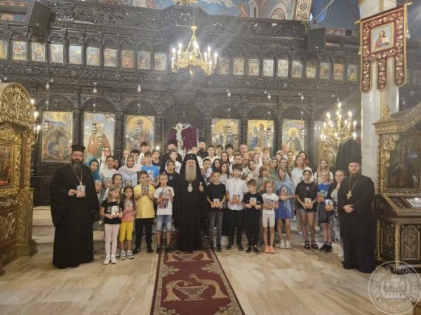 Ο Σεβασμιώτατος χαιρέτησε τα παιδιά και μίλησε μαζί τους, ευλόγησε τα παιδιά και τους γονείς τους και τους χάρισε εικόνες και τα βιβλία “Blagonravie”, “Άγιος Ιωάννης της Ρίλα” και το βιβλίο “Θαύματα φτιαγμένα από Τραύματα” του π. Χαράλαμπου Παπαδόπουλου, που κυκλοφόρησε πρόσφατα από τη Μητρόπολη Φιλιππούπολης.