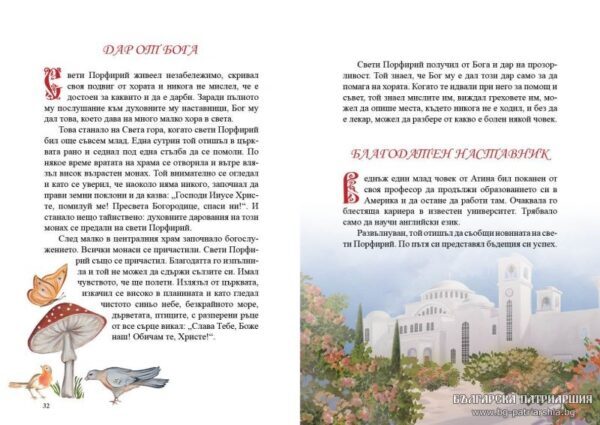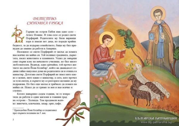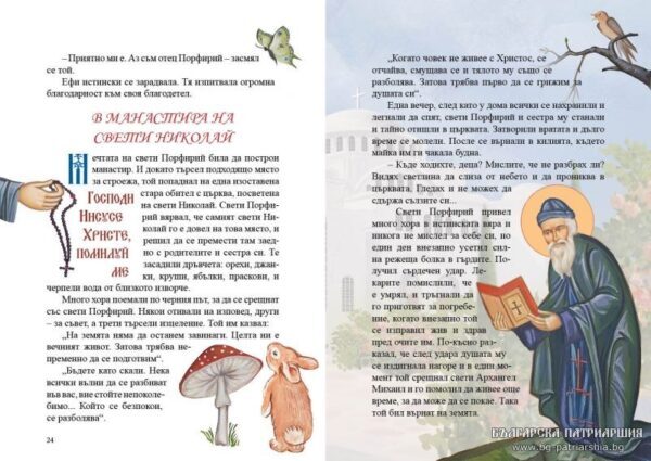 Έτοιμο να κυκλοφορήσει είναι το παιδικό βιβλίο για τον Άγιο Πορφύριο τον Καυσοκαλυβίτη στη Βουλγαρία. Η έκδοση αυτή συμπεριλαμβάνεται στη σειρά “Για τα παιδιά της Βουλγαρίας” που αποτελεί πρωτοβουλία της Ιεράς Μητροπόλεως Λόβετς.