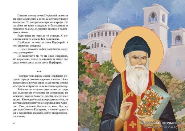 Έτοιμο να κυκλοφορήσει είναι το παιδικό βιβλίο για τον Άγιο Πορφύριο τον Καυσοκαλυβίτη στη Βουλγαρία. Η έκδοση αυτή συμπεριλαμβάνεται στη σειρά “Για τα παιδιά της Βουλγαρίας” που αποτελεί πρωτοβουλία της Ιεράς Μητροπόλεως Λόβετς.